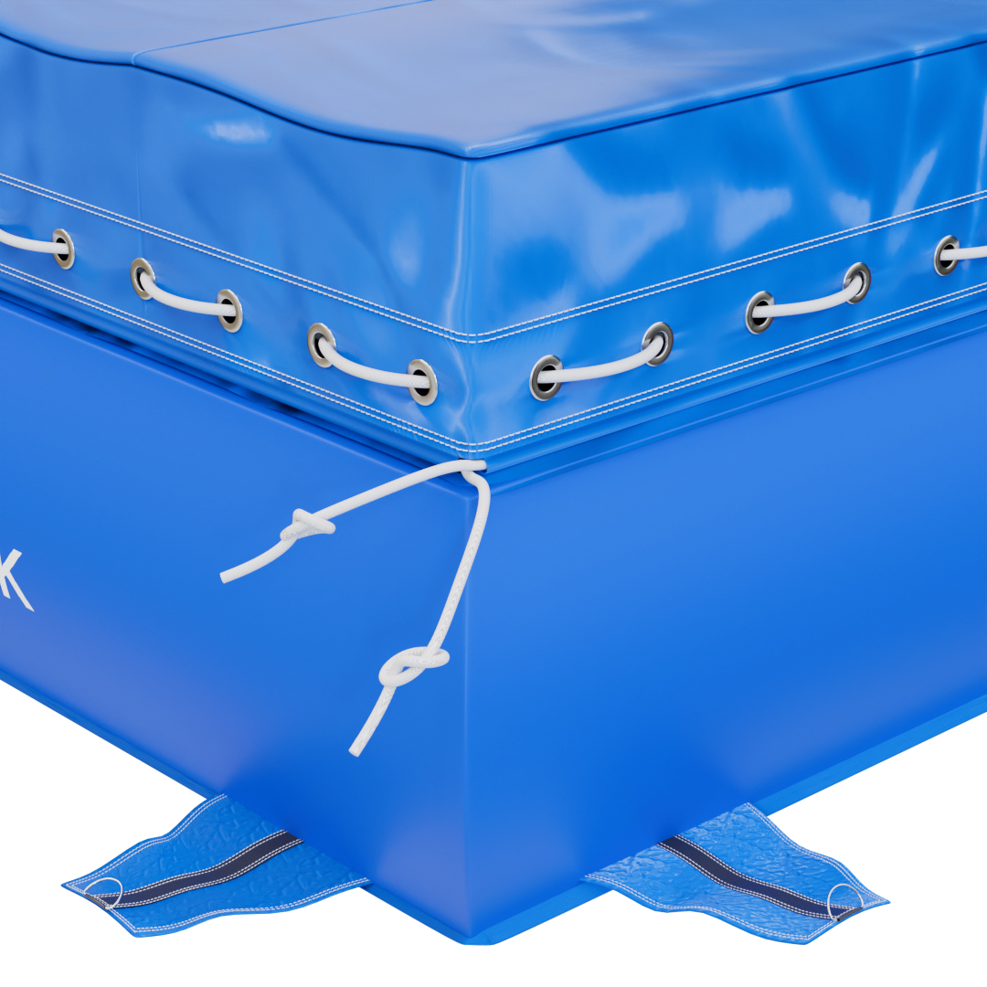 Nach dem Training lässt sich die Matte einfach entlüften und kompakt verstauen, sodass sie problemlos in jeder Sporttasche Platz findet. Dank der integrierten D-Ringe und Klettverschlüsse lässt sich die Matte mühelos an Geräten oder dem AirTrack befestigen, was Ihnen zusätzliche Sicherheit und Stabilität bietet.